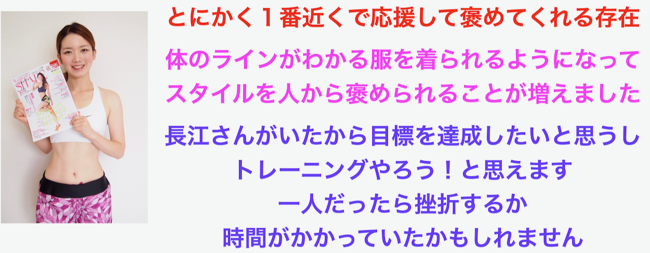 ただ細いだけじゃない筋肉がついた引き締まったヘルシーボディになりたいという私の理想を長江さんがわかってくれたのが嬉しかったです。